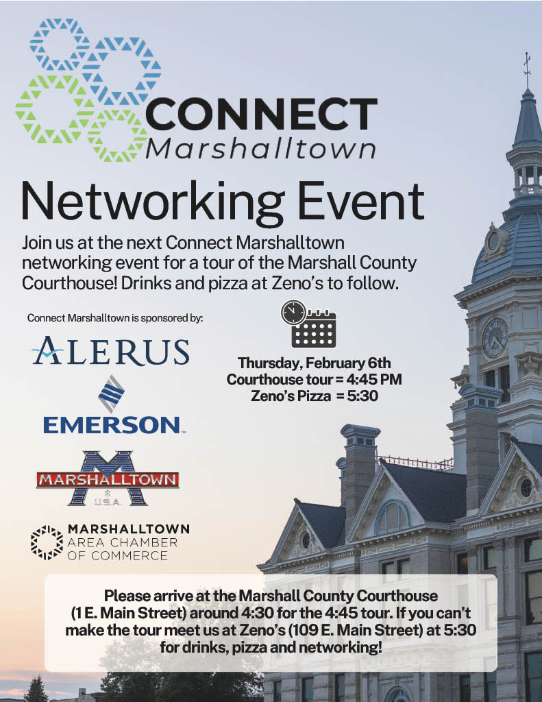 Connect Marshalltown events are sponsored by Alerus, Emerson, & Marshalltown Company.
