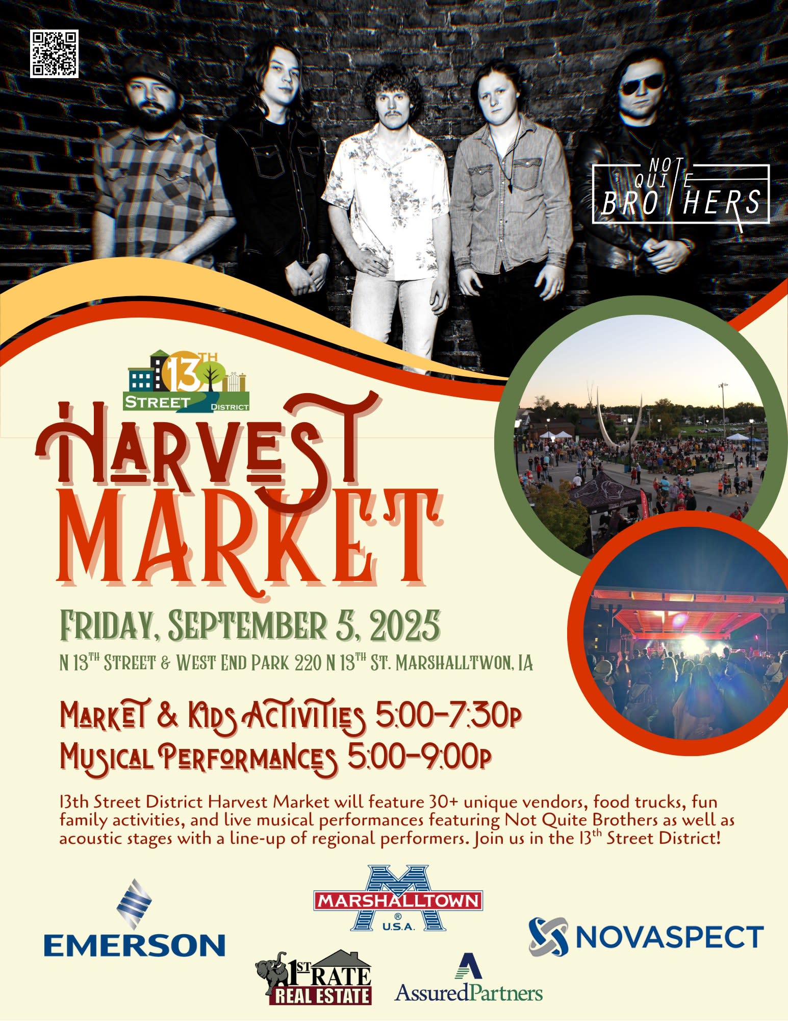 13th Street District Harvest Market 2025 will feature 30+ unique vendors, food trucks, and live musical performances featuring Not Quite Brothers in West End Park Pavilion Main Stage as well as an acoustic stage with a line-up of regional performers. This fun, family friendly event will host vendors hand-picked from around the Midwest with an assortment to interest all! This event brings something magical to our district! If there is an event to attend, this is it!