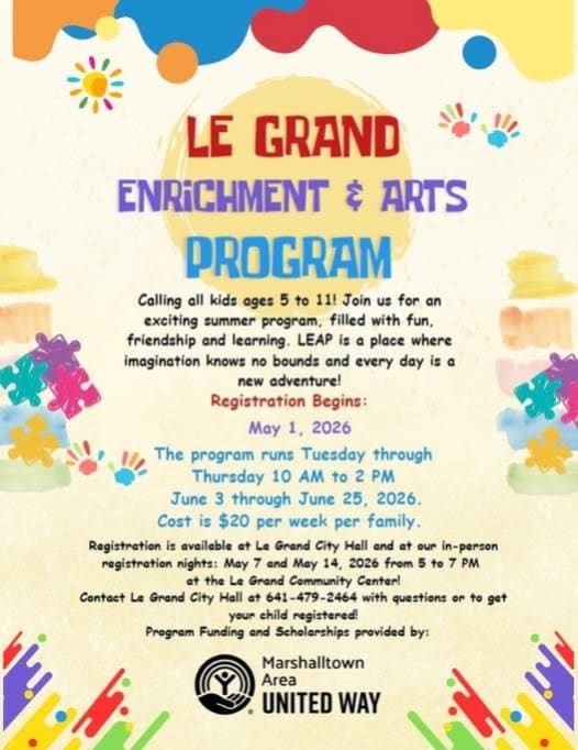 URL:https://business.marshalltown.org/chamber-events/Details/le-grand-enrichment-arts-program-1697914?sourceTypeId=Hub