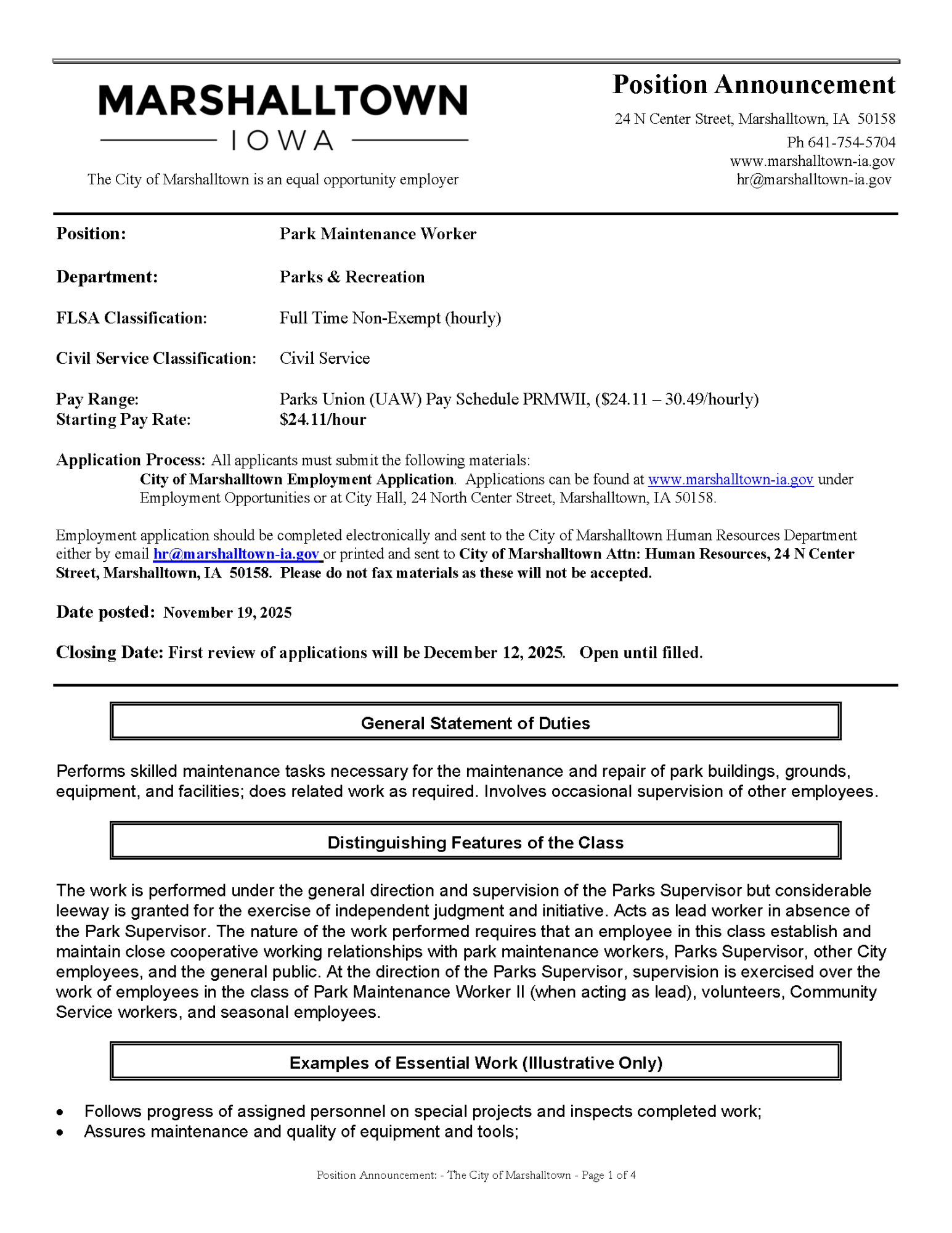 Marshalltown Job Postings