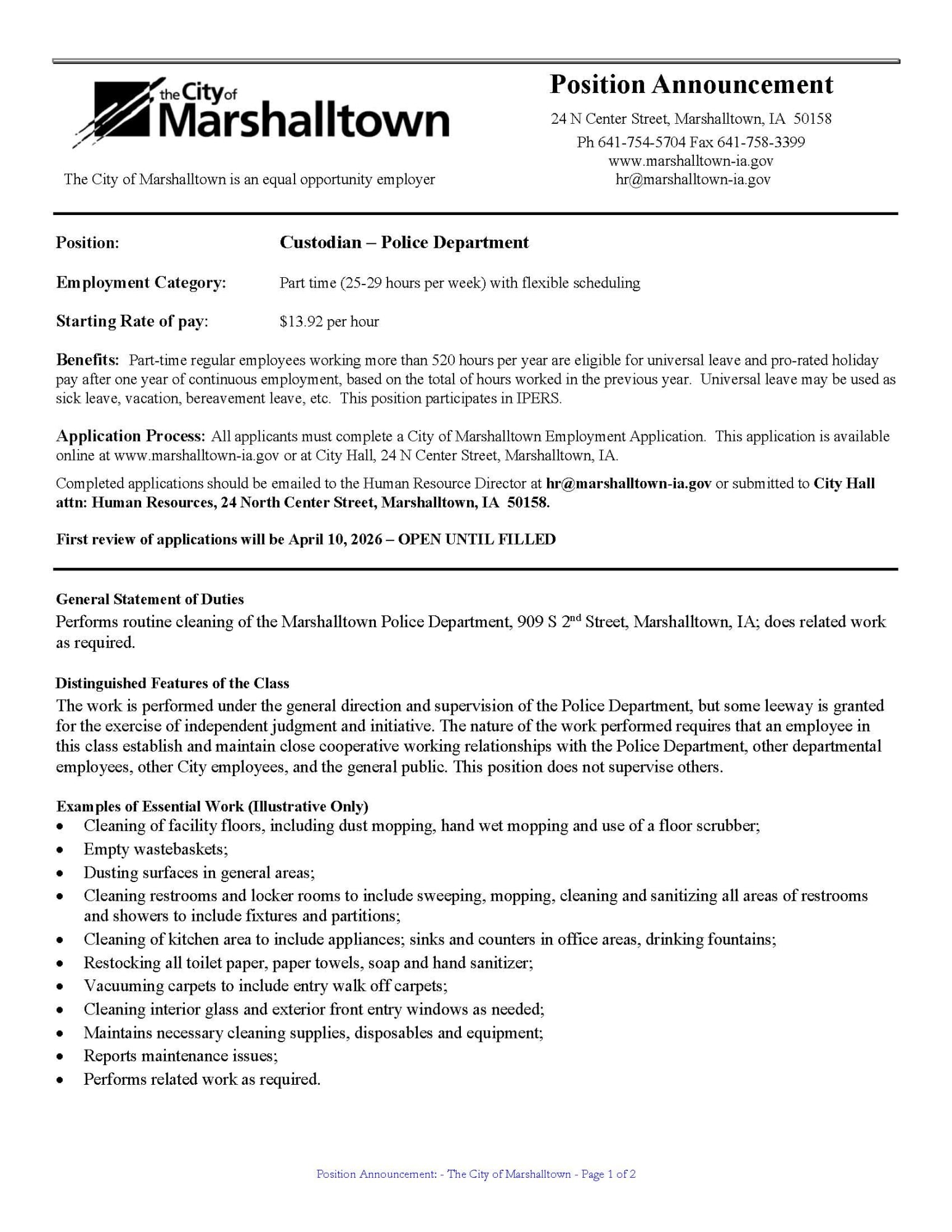 Back to Marshalltown Job Openings