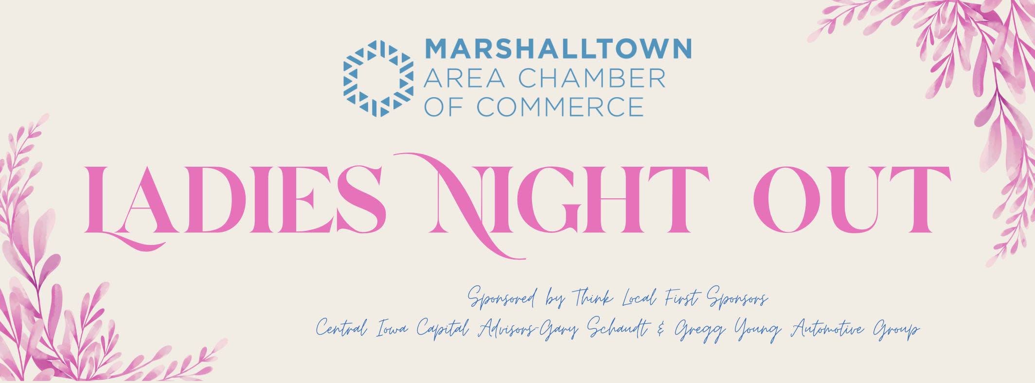 Ladies Night Out is hosted by the Marshalltown Area Chamber of Commerce and sponsored by our 2025-2026 Think Local First Leading Sponsor Central Iowa Capital Advisors-Gary Schaudt & Champion Sponsor Gregg Young Automotive Group.